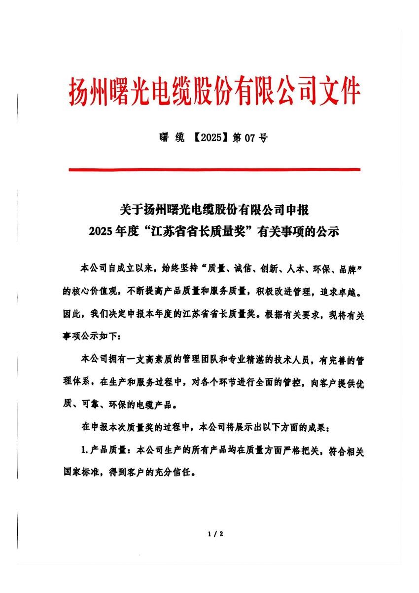 关于云开体育app下载安装手机版申报2025年度“江苏省省长质量奖”有关事项的公示