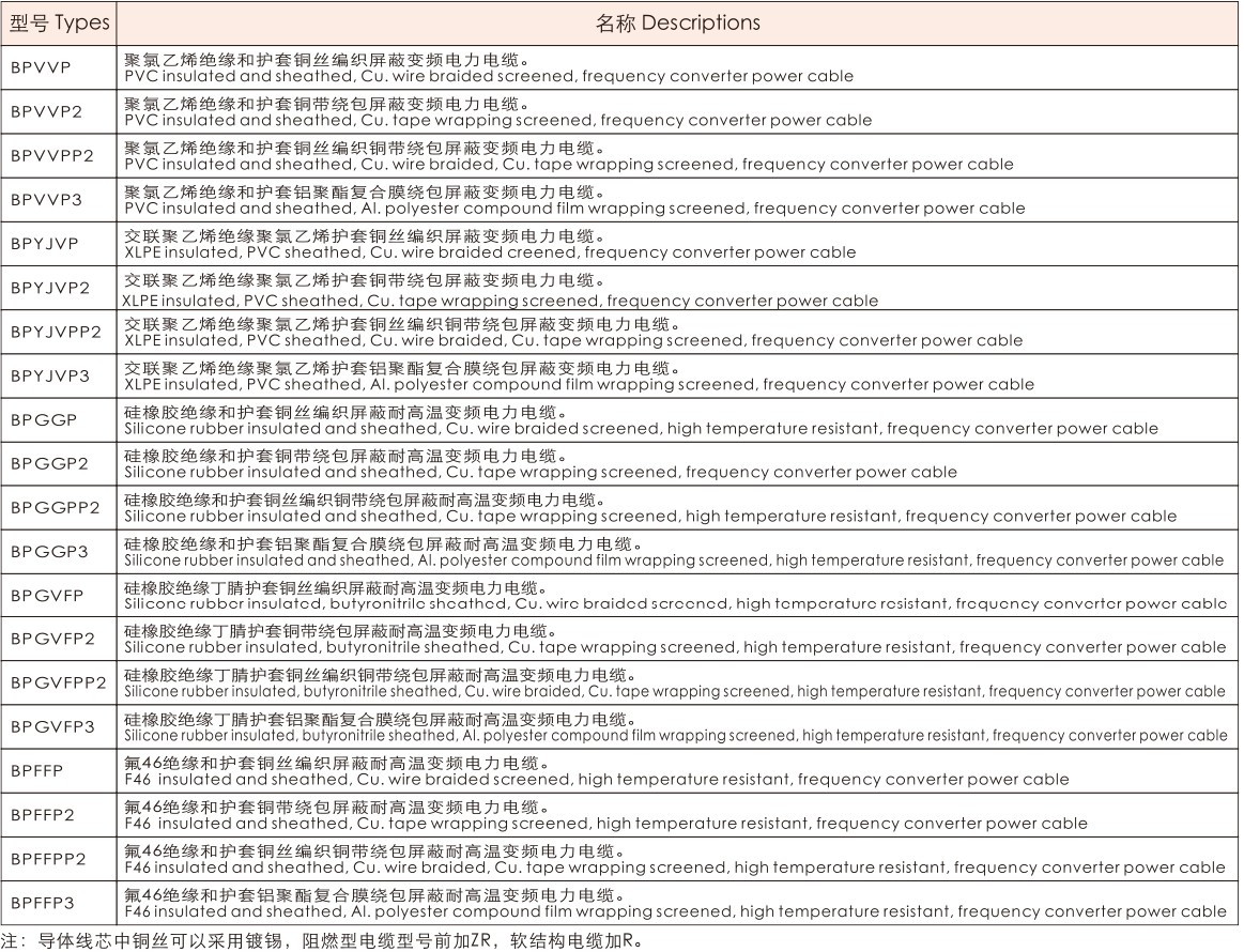 本产品适用于交流额定电压0.6/1kV及以下变频控制系统作供电电缆或电气连接,产品具有较强的耐电压冲击性,能经受变频时的脉冲电压,电缆具有良好的屏蔽性,并有效消除电磁干扰,降低变频电机噪音,保证系统稳定运行。广泛用于冶金、电力、石化等行业。